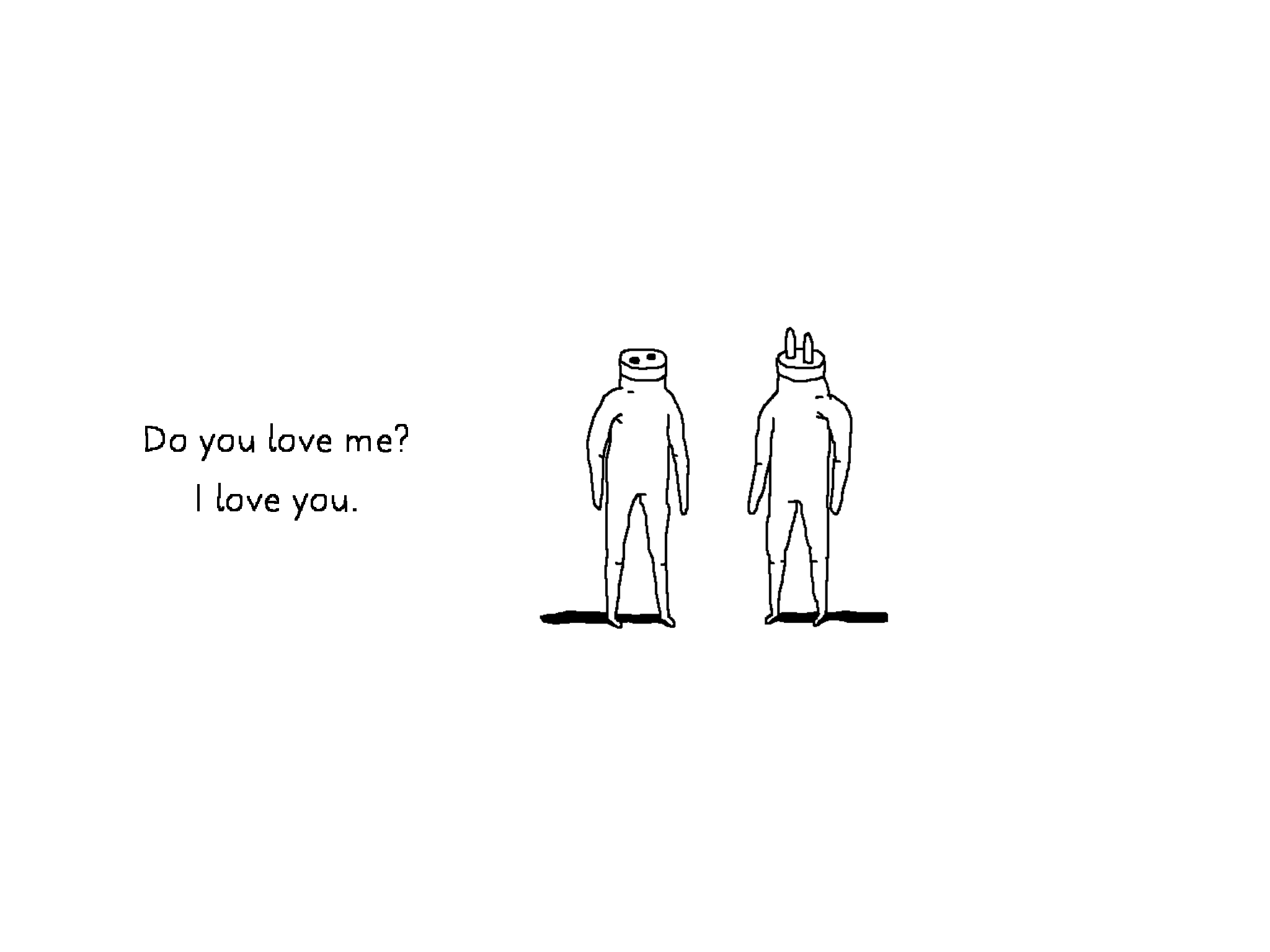 Explore the feelings of anthropoid creatures that go beyond sexuality and reproduction: love. PLUG & PLAY is a surreal play with plugs.